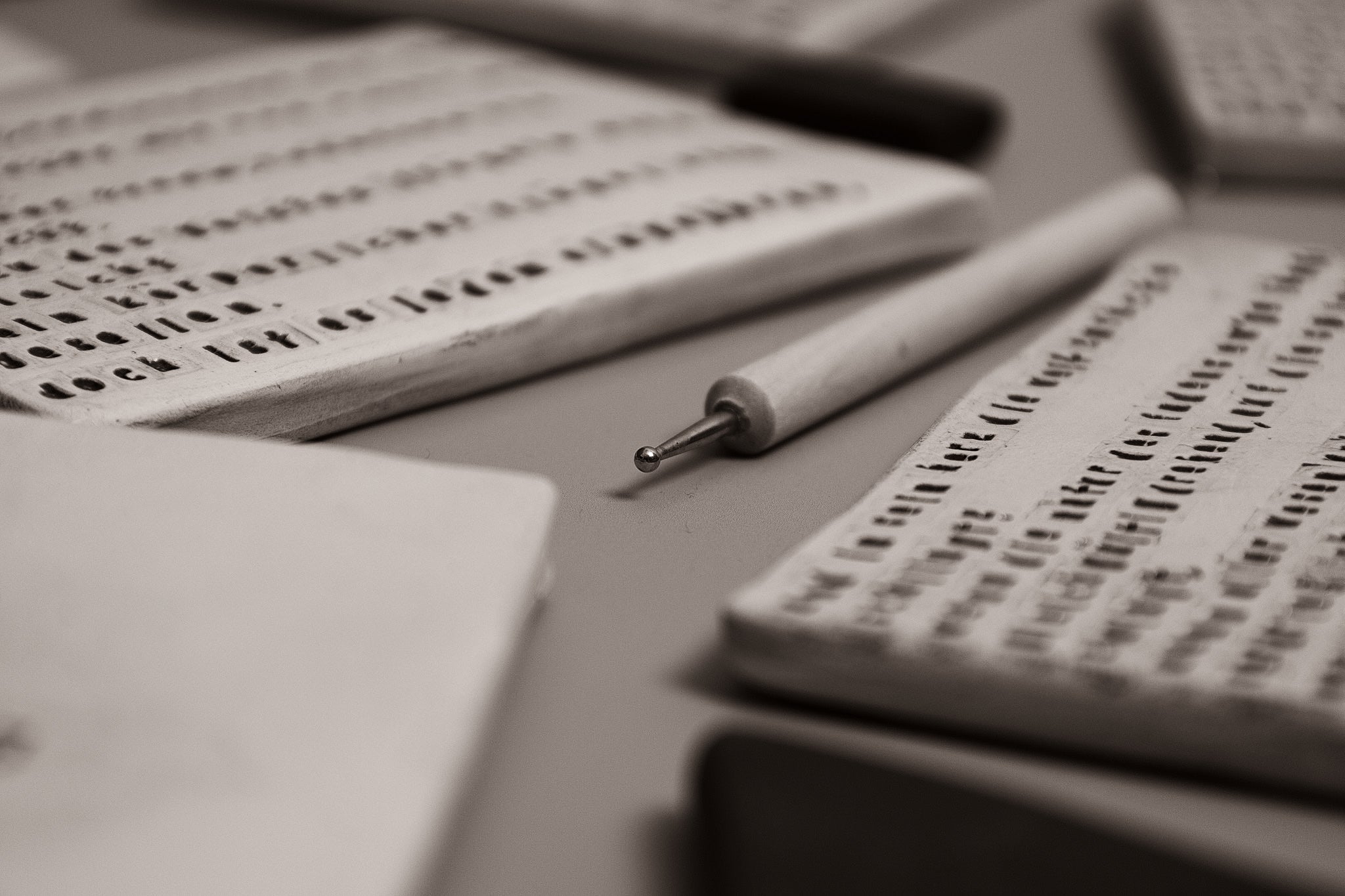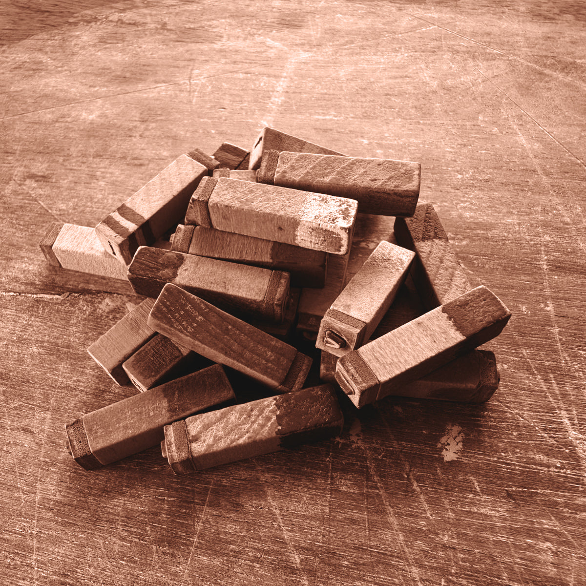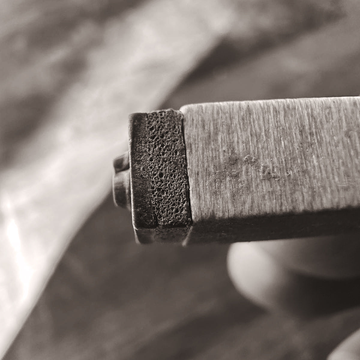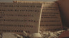 Jede Platte trägt einen individuell geprägten Text — entweder aus meinem Faustplatz-Projekt oder nach Wunsch. Ich arbeite mit einer hellcremefarbenen Tonmasse auf DIN A6 und präge die Buchstaben mit einem historischen Stempelset aus den 1950er Jahren, das ursprünglich für Museumsbeschriftungen genutzt wurde.